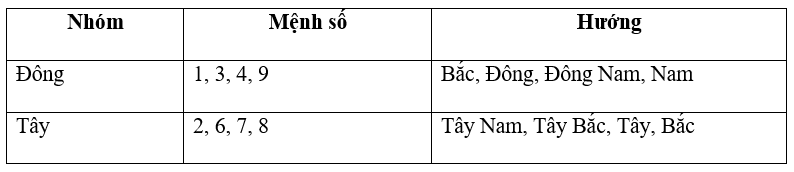 Lấy số dư tra bảng ở trên, ta sẽ biết mình thuộc Đông hay Tây.