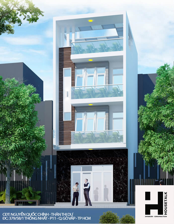 Diện tích sàn: 175m2. Gồm Trệt, Lầu 2, 3, 4.