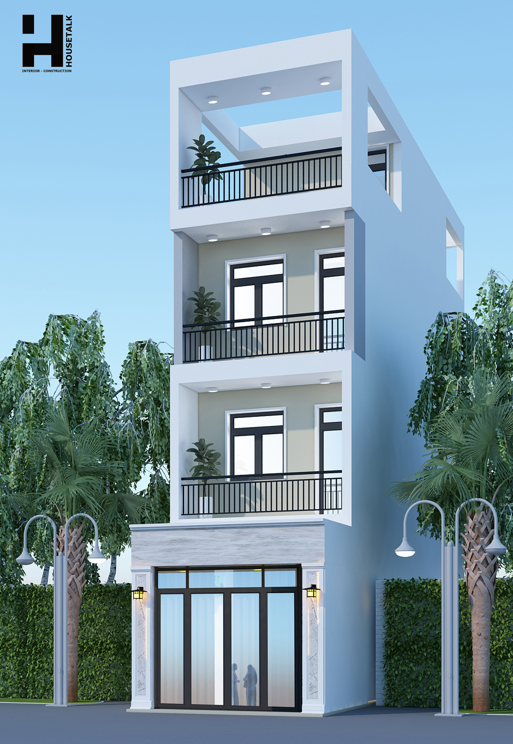 Diện tích sàn: 180m2. Gồm 1 trệt, 2 lầu, sân thượng