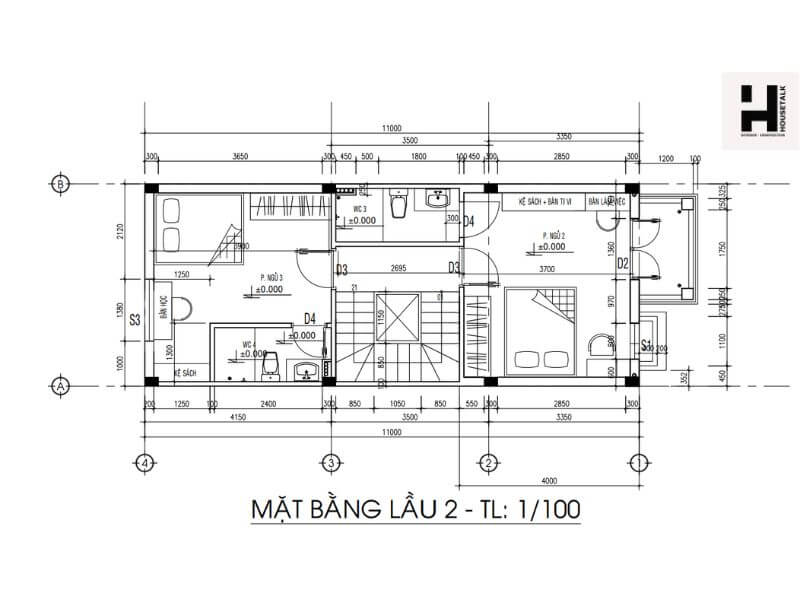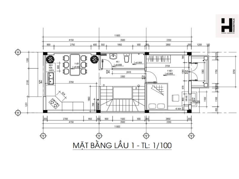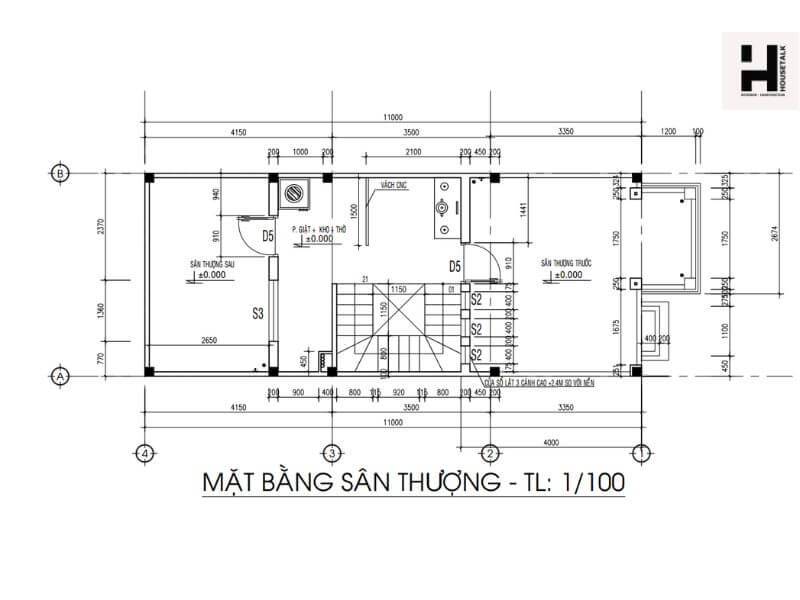 Diện tích sàn: 270m2. Gồm 4 tầng